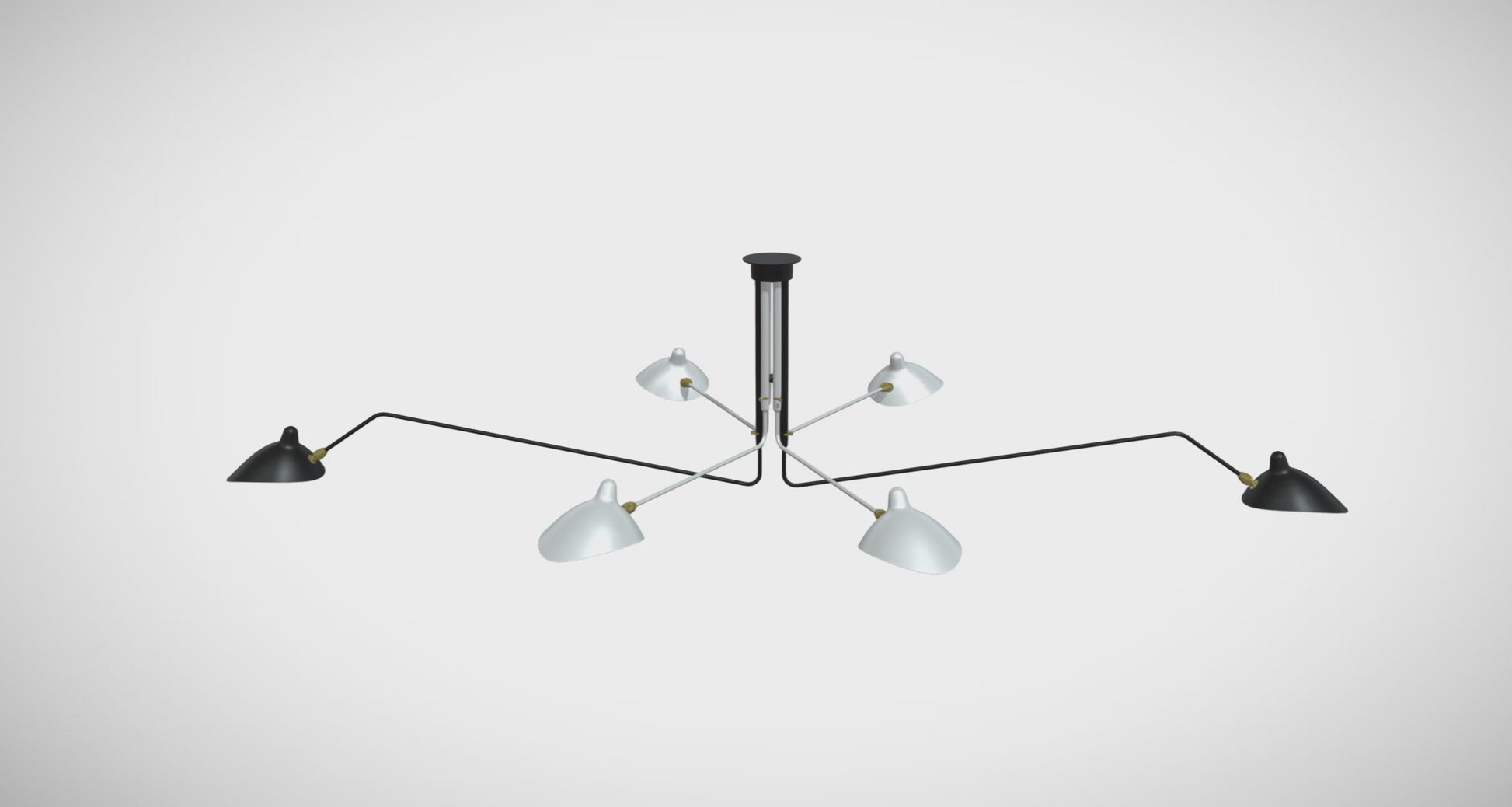 Serge Mouille Ceiling Lamp 6 Arms – Black and White