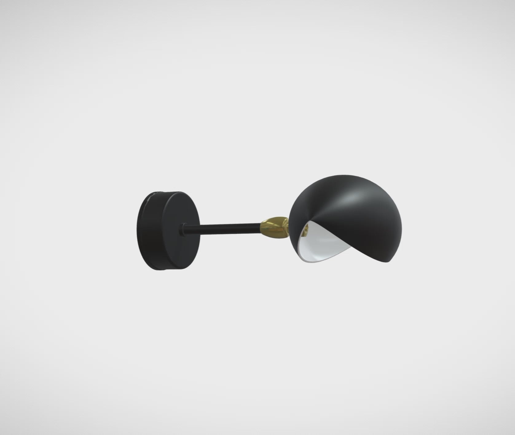 The Mouille “œil” or Eye Sconce is named for the shape of the shade. This simple yet practical lamp is suitable for many applications due to its diminuative scale and shade that both tilts and swivels. Switch on mounting plate.